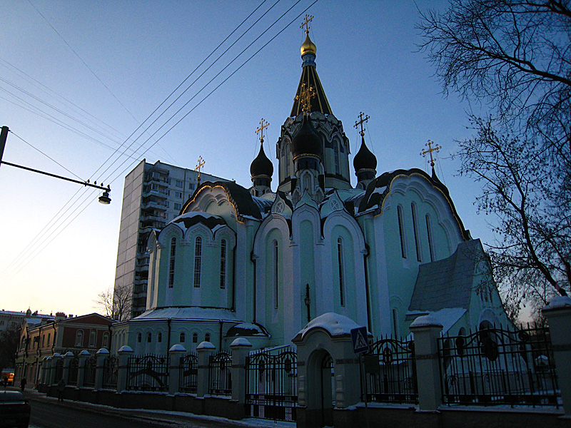 I took the metro all the way to Sokolniki station and got off at the bike market. There were supposed to be a lot of cycling shops here. And there were; I just didn’t discover more than two until my second day back on Thursday. But there was a cool looking church across the road: