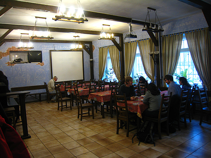Lenny, with Dasha and Dasha, our Russian Language teachers. The tables are set in a square-like arrangement so we all sat on the outside of them and faced inwards.