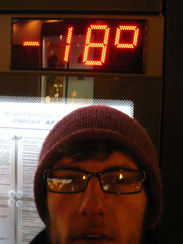 The final was long and challenging, but fun. Afterward, I played the piano a little bit and braced myself for the cold outside. It was the coldest day of the week according to weather.com and it felt like it. Along the walk home there’s a thermometer on Old Arbat so I decided to check it out.