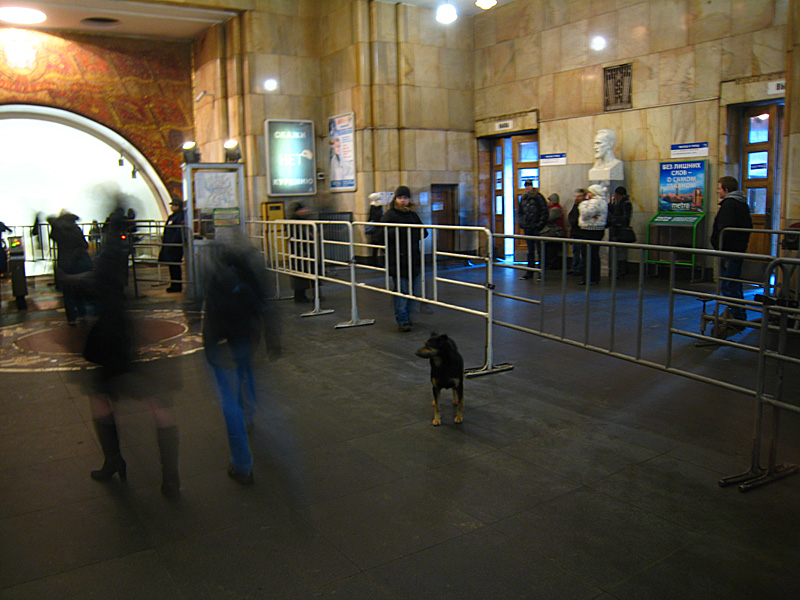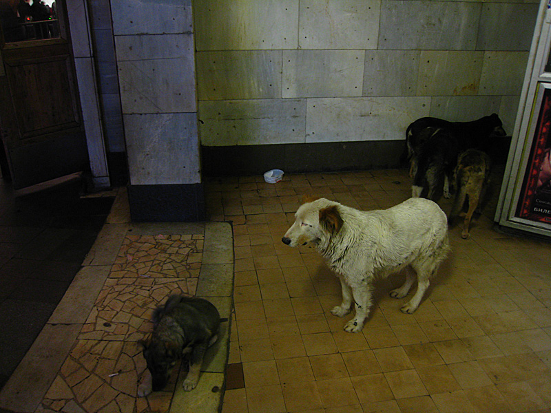 At this point my toes and fingers were frozen with pain. It was not a good idea to switch out my jeans for cloth pants today, and boots for normal shoes. I put my camera away and began the long walk back to the metro station. I stopped in the Stalin building to warm up the toes as they didn’t seem to warm up from the walk. Then I made the final short distance to the metro. But on the way I saw another dog: