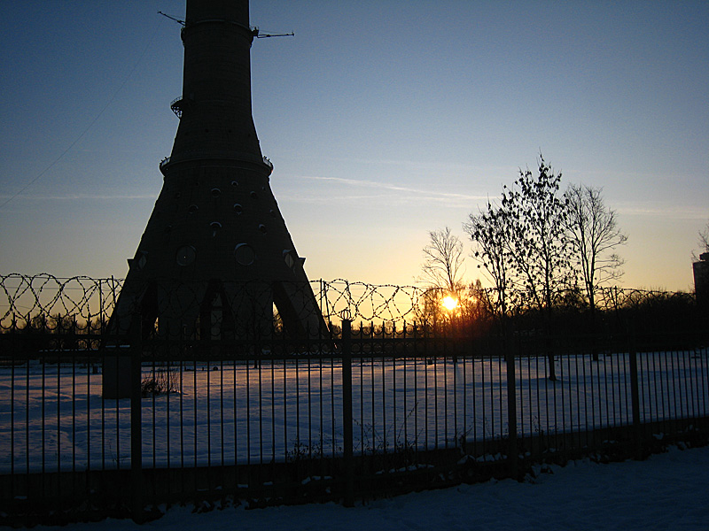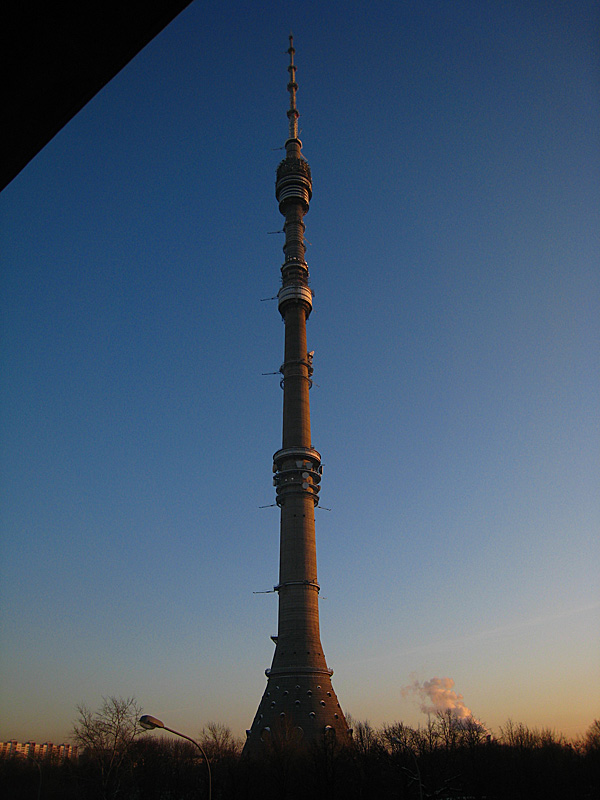 Pretty dog eh? Her whiskers were greying but she she was still energetic. Toward the end of the ride she started pulling the policeman, trying to get higher on the escalator, as if in anticipation of something. Then, the officer bent down and wrapped the leash around the dog’s lower stomach, while still having it connected to the neck, and grabbed the neck part and the stomach part with her hands. When the end of the escalator arrived, the officer said something to the dog. It jumped at the same time she lifted the dog upwards to clear the ending of the escalator. It was really cool. Lakota and I should try it sometime. Although, I think Lakota might freak out at the escalator and not even want to get on it. Anyway, at the top of the escalator I realized I wasn’t supposed to have gone up it, but instead walked the other way as this was my transfer station and not my exit station. No matter, I went back down, got on the metro again and exited at BVND station as I wanted to check out Ostankino Tower, what once was the tallest free standing structure in part of the 20th century.