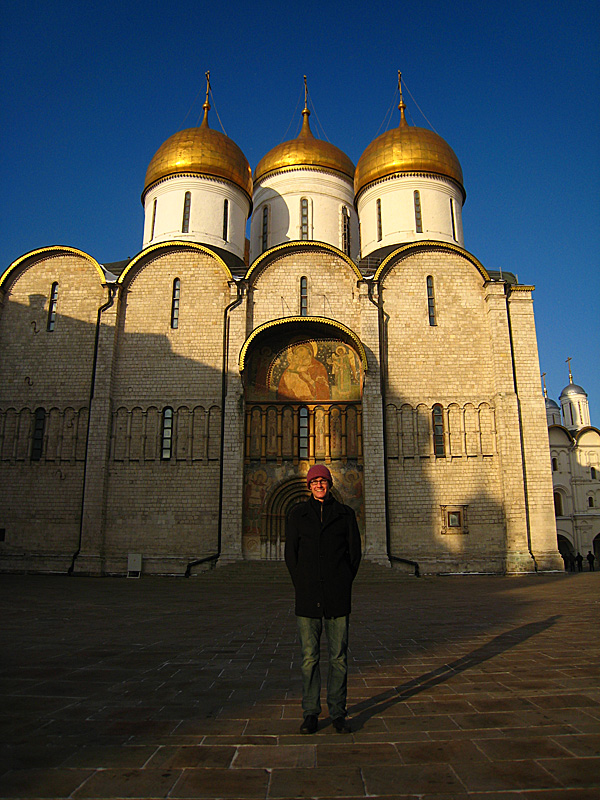A photo for the tourist picture book of me at Pushkin Cafe. Everything here is outrageously expensive, but we have no intention of eating there anyway.