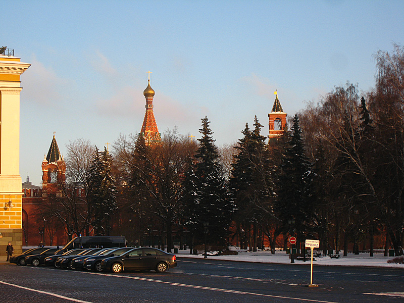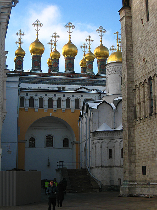 Such green lawns in Moscow. Not anymore! The snow has finally fallen and it’s white, and brown (yuck).The Kremlin, hiding behind the walls.Two of the cathedrals inside the walls. I still need to go see these. It’s getting close to the end…I better make it.