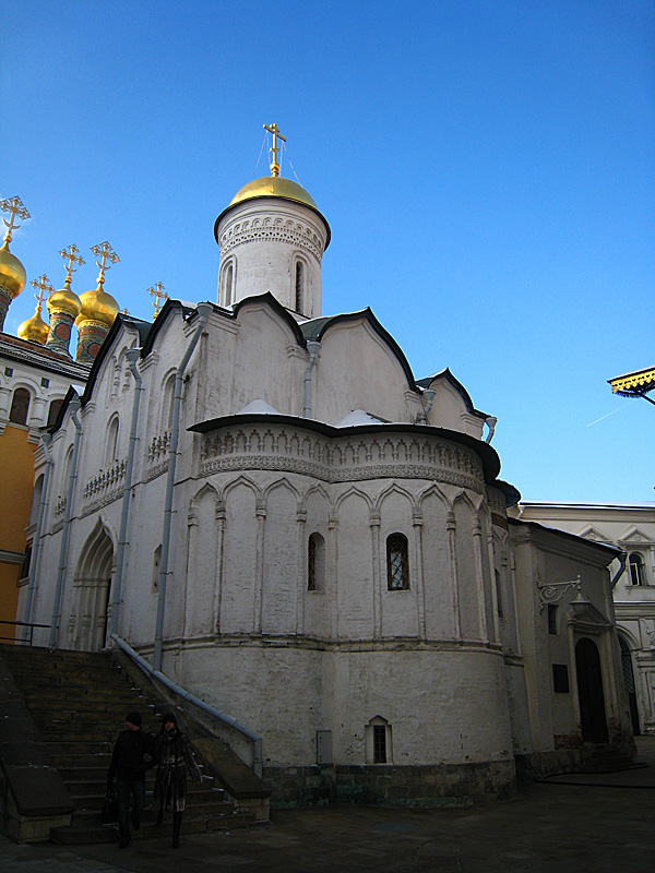 To the left, we have Ivan the Great’s Bell Tower Complex. Inside, they had an exhibition with artifacts from old Russia.The Assumption Cathedral. I think this cathedral is the most beautiful out of them all. I really like the cobblestone look. A man from Virginia was nice enough to take a photo of me after I took his family’s photo.The towers in the background are from the Terem palace and churches. I wasn’t able to get much closer to these.The Church of Laying our Lady’s Holy Robe. This was a quaint church with a traditional interior that I had seen in the other Russian churches.Looking back across the square at Archangel Cathedral.
