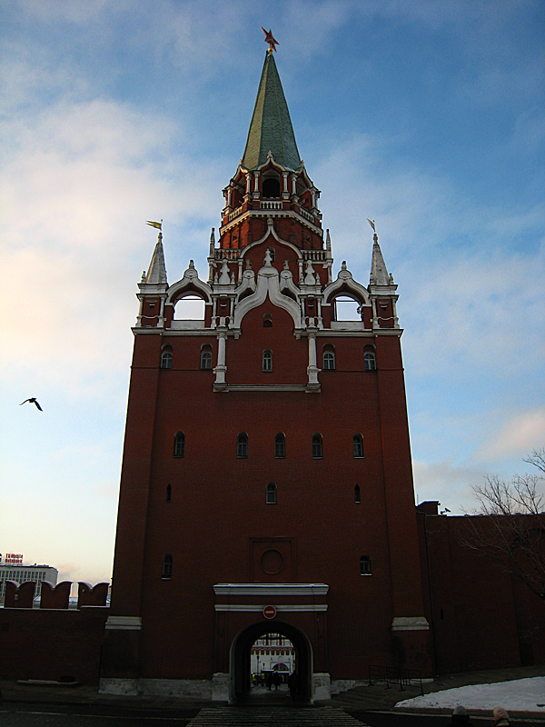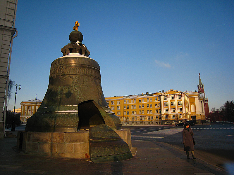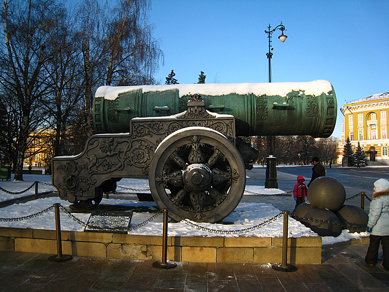 The Patriarch’s PalaceThe Tsar Cannon. This beast is huge. Some American walked by and said, “This thing is so impractical.” I laughed at him and silently remarked, “maybe, but it sure would hurt to get hit by a cannon ball that big.”The Senate Building across the square. The cannon points to this building.The Tsar Bell. Apparently, Tsar means big, maybe.The path to the ‘Secret Gardens’ was blocked so I couldn’t go to them. Not that they were secret anyway. They were on the map.One of these is the Tsar Tower. These towers overlook Red Square. The map showed the leftmost tower was the Tsar tower but that didn’t make much sense as everything else with the Tsar title was larger than normal.The Clock Tower, to the left of the other three towers above.On the other side of the Kremlin stood the Arsenal, with cannons lining the outside.Tower on the opposite side of Red Square that I walked underneath to exit the Kremlin quarters.One last look back into the Kremlin before leaving.The bridge from the tower to the entrance on the other side of what might have once been a moat gave me this view of one last incredible Moscow sunset.