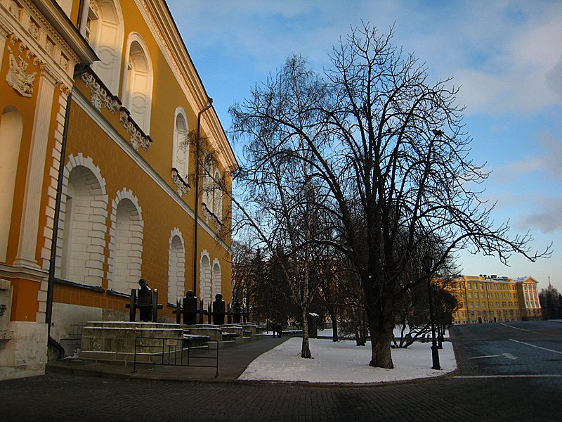 The trees outside the Kremlin walls are rather pretty.I called Lenny to help us decide if we were going straight back to the dorm or if we were going to stop at Kievskaya to shop for food supplies.
