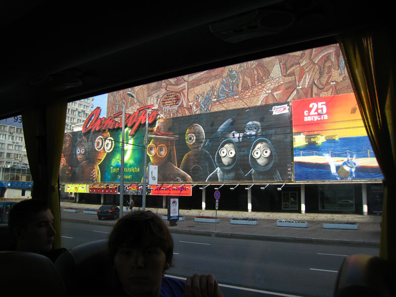 Reminds me of that famous photo of the men sitting on the metal beam of the Chrysler Building under construction. Not quite as cool though.The Other Side of the Red Square. I’ll go back to get photos of the actual square when the cleanup is done.Apparently Communism is alive and kickin’ in Moscow. Unfortunately for the movement, there doesn’t seem to be a future generation for it as one can tell by the photo. Our tour guide told us they get angry when people confront them or take photos so I snuck this one before they got too close. (Oh, by the way, the face on the board belongs to Lenin. That’s what ЛЕНИН says in Cyrillic.)