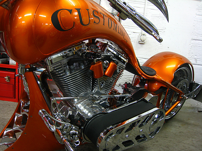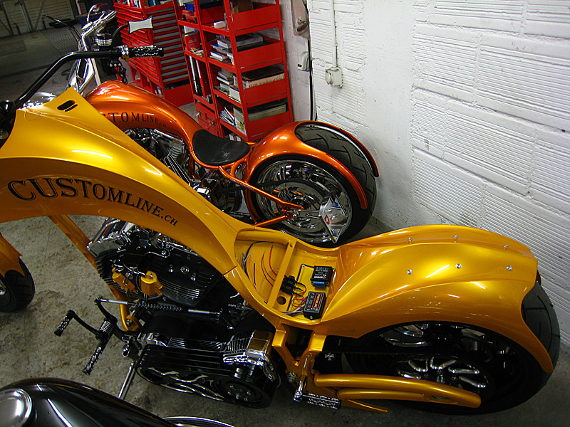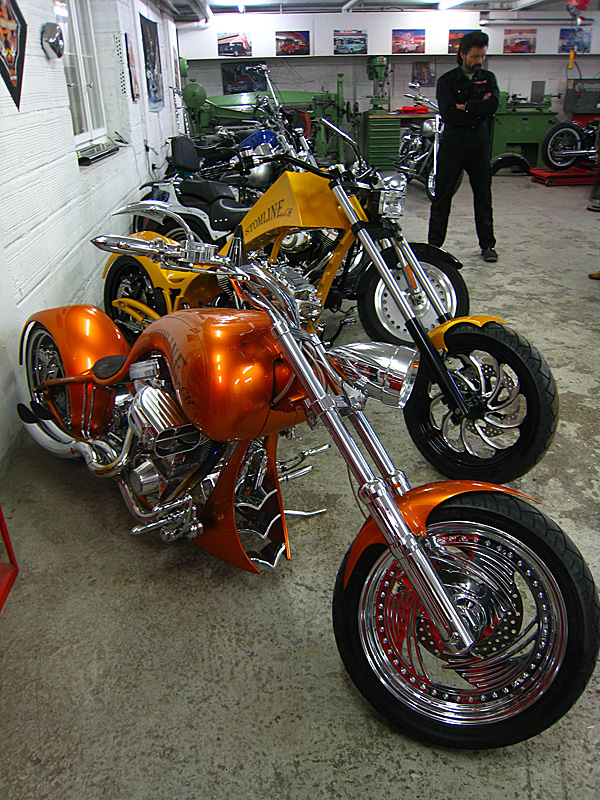 customline.ch A one man custom motorcycle line by Roger. These are all Harley’s with completely custom design, all manual work done by Roger, the man in black.