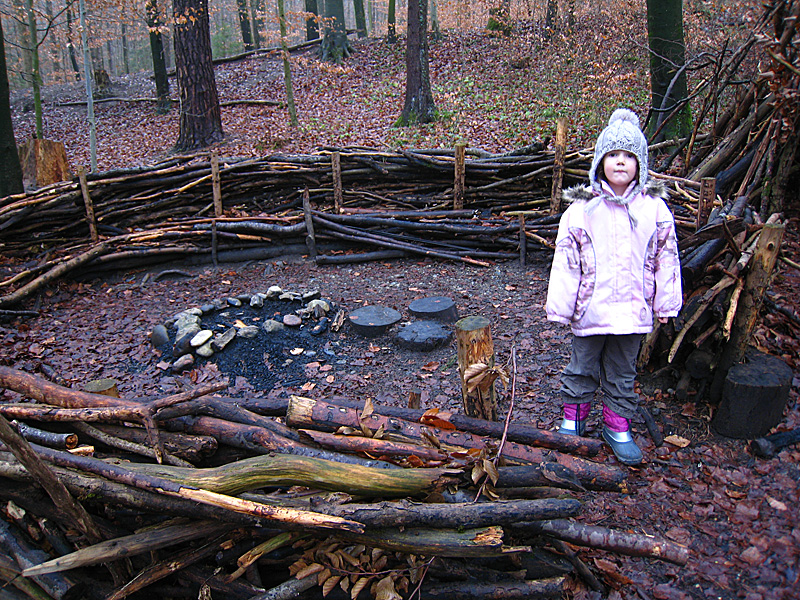 Jamie took us to a part of the woods where her kindergarten class goes every other Thursday and makes soup and learns about nature. This is their couch and firepit.